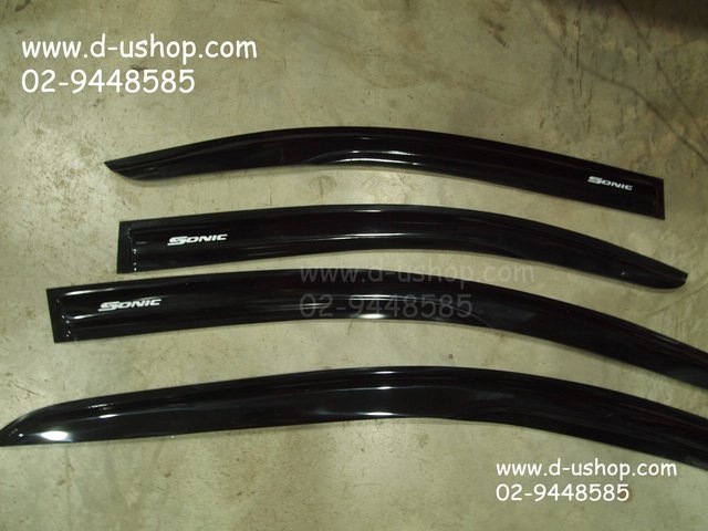 กันสาดสีดำตรงรุ่น Chevrolet Sonic New 2012 วัสดุพลาสติก ABS สีดำอย่างดี มาพร้อมกาว ติดตั้งง่ายได้ด้วยตัวเอง ตัวงานสกรีนโลโก้ Sonic สวยงาม 1 ชุดมี 4 ชิ้น