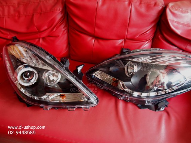 โคมไฟหน้าโปรเจคเตอร์พร้อมวงแหวน LED Nissan Almera สินค้านำเข้าจากไต้หวันพื้นดำ งาน Eagle Eyes เกรด A ตรงรุ่น ไม่ต้องดัดแปลง มาพร้อมอุปกรณ์สายไฟครบชุด ติดตั้งได้ทันที เสริมความสวยงามให้กับรถคุณ