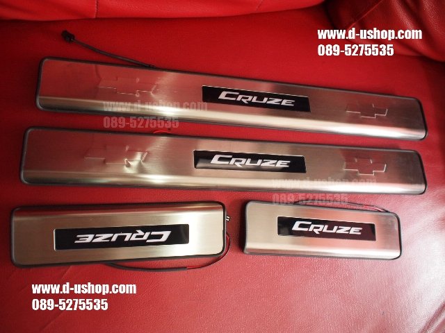 กาบบันไดมีไฟแสงสีฟ้า Chevrolet Cruze V.2 สินค้านำเข้าจากไต้หวัน งานแสตนเลสมีขอบยางสีดำ มีแสงไฟตรงโลโก้ Cruze LED แสงสีฟ้า ทั้งสี่ชิ้น งานตรงรุ่น มาพร้อมอุปกรณ์สายไฟครบชุด นำไปติดตั้งได้ทันที เสริมความสวยงาม กันรอยขีดข่วนได้ดี 1 ชุดมี 4 ชิ้น