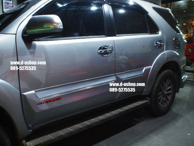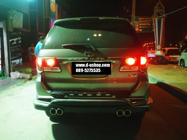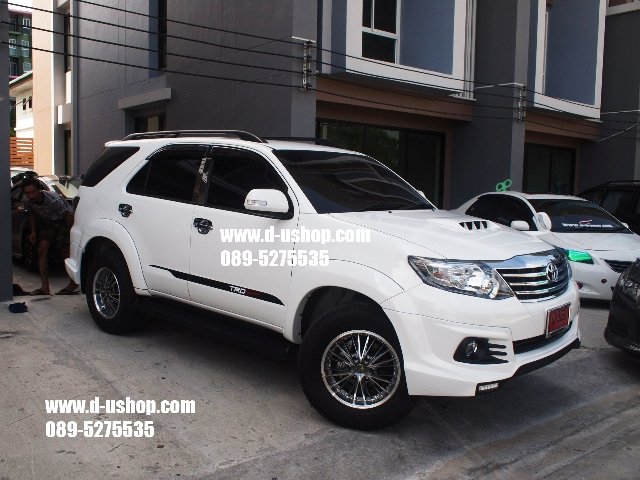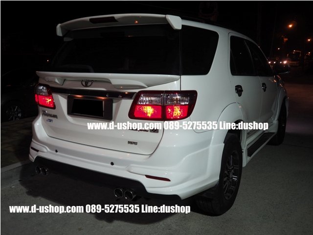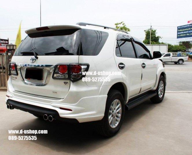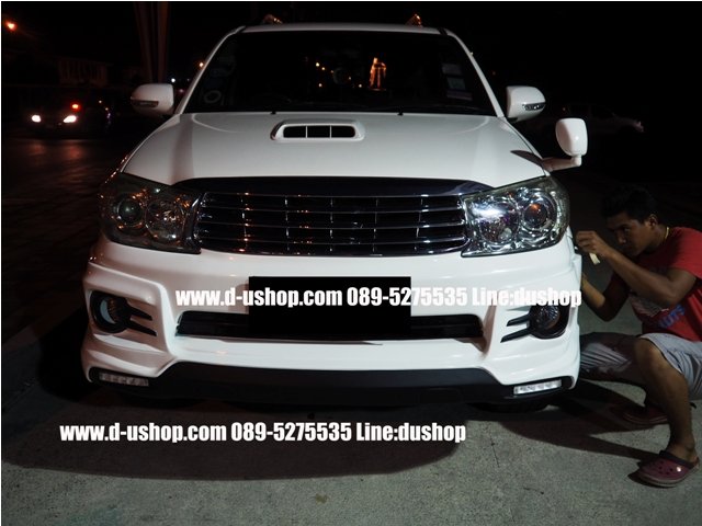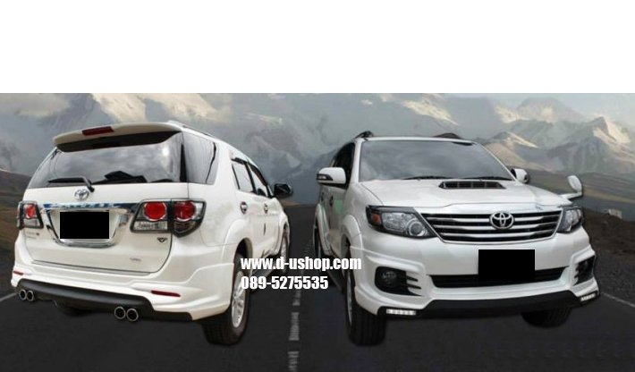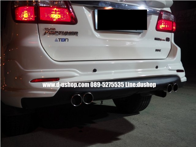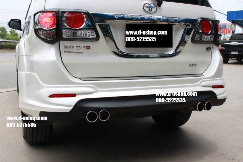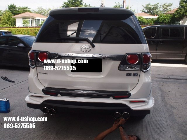 ชุดแต่งรอบคัน Toyota Fortuner New 2014 ทรงTRD V.5ท่อคู่ งานพลาสติกABS อย่างดี เข้ารูป มาตรฐานศูนย์ มาใหม่ล่าสุด มาพร้อม ปลายท่อหลอก 4ท่อ 1ชุดประกอบด้วย - สเกิร์ตหน้า - สเกิร์ตหลัง - ชุดปลายท่อหลอก - ชุดไฟDaylight Running Time LED พิเศษ รวมทำสีพร้อมติดตั้ง 13,900 รับประกันงานสีตลอด 1ปี กรณีขาวมุก เพิ่ม 1,000 บาทค่ะ **กรณีซื้อแยกชิ้น สเกิร์ตหน้า 7,500 บาท พร้อมชุดไฟ Daylight Running Time LED สเกิร์ตหลัง 7,500 บาท พร้อมปลายท่อหลอกคู่