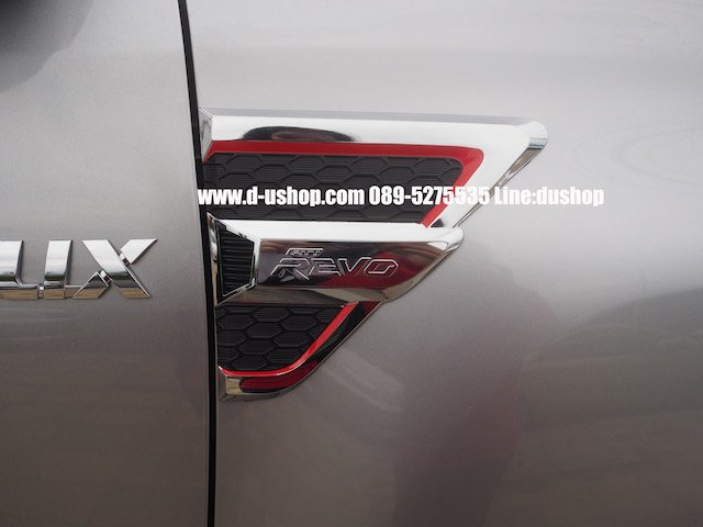 ครอบไฟแก้มโครเมียมตัดแดงตรงรุ่น Toyota REVO 2015 งาน FITT แท้ ปั๊มโลโก้สวยงาม ตัดขอบเส้นแดงดีไซต์สปอร์ต มีกาวในตัว ติดตั้งได้ทันที 1 ชุดมี 2 ชิ้น