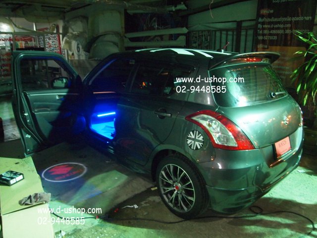 ชุดไฟ LED Shadow Light ส่องพื้นแบบมีโลโก้ Suzuki Swfit Eco Car 2012 มีไฟโลโก้ส่องพื้นตรงประตู 2 บาน เพิ่มความสว่าง เสริมความสวยงาม แปลกใหม่ ไม่ซ้ำแบบใคร่ เิปิดติดปิดดับ สินค้านำเข้าจากไต้หวัน มาพร้อมอุปกรณ์สายไฟครบชุด ติดตั้งได้ทันที **ฟรีติดตั้งพร้อมรับประกันงานตลอด 6 เดือน สินค้ามีจำนวนจำกัดนะคะ มีให้เลือกลาย HKS Transformer Chevrolet TRD BMW Mini Cooper Suzuki