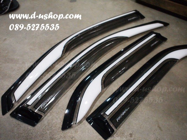 กันสาดสีขาวดำใส Toyota Fortuner New 2012 พลาสติก ABS อย่างดีดำใส พ่นตัดขาว สกรีนโลโก้ Fortuner สวยงาม เสริมความสปอร์ตให้กับรถคุณ 1 ชุดมี 4 ชิ้น