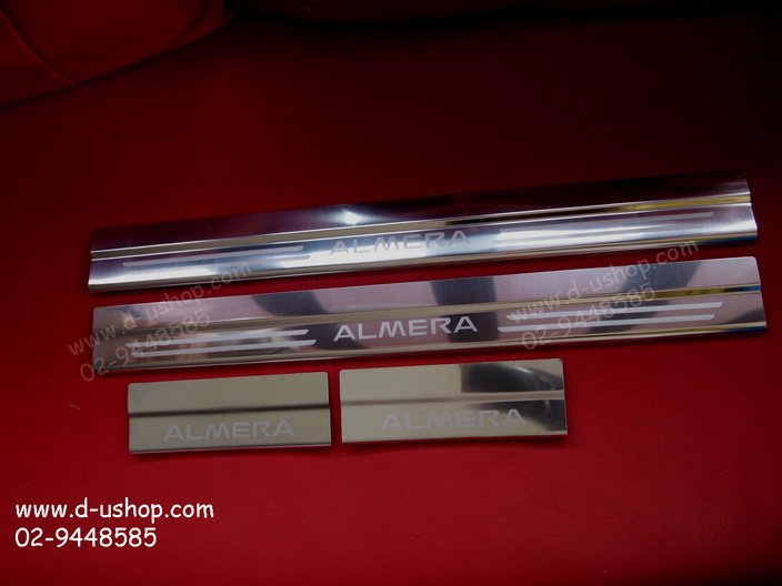 กาบบันไดสแตนเลสกันรอยยิงทราย Nissan Almera 2011 วัสดุสแตนเลสอย่างดียิงทรายโลโก้ สวยงาม มาพร้อมกาว3 M ติดตั้งได้ทันที 1 ชุดมี 4 ชิ้น