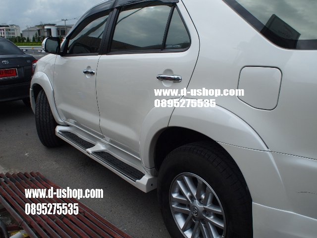 ชุดแต่งรอบคัน Toyota Fortuner New 2012 ทรง Zercon วัสดุพลาสติก ABS อย่างดีตรงรุ่น เสริมความสปอร์ตให้กับรถคุณ ประกอบด้วย ชุดเล็ก -  สเกิร์ตหน้า -  สเกิร์ตหลังพร้อมปลายท่อคู่สแตนเลสแท้ -  ครอบบันไดข้างสีตามตัวรถ ราคา 23,500 บาท ทำสีพร้อมติดตั้ง รับประกันงานสีตลอด 1 ปี กรณีสีขาวมุกเพิ่ม 1,000 บาทค่ะ ประกอบด้วย ชุดเต็ม -  สเกิร์ตหน้า -  สเกิร์ตหลังพร้อมปลายท่อคู่สแตนเลสแท้ -  ครอบบันไดข้างสีตามตัวรถ -  สปอยเลอร์สีตามตัวรถ -  แผงข้างประตู รวมทำสีพร้อมติดตั้ง  33,500 บาท กรณีทำสีขาวมุก 1,500 บาทค่ะ