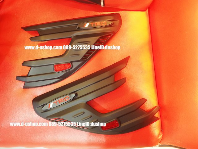 ครอบไฟหน้าดำด้าน TRD สำหรับ Toyota REVO 2015-16 ABS พ่นดำด้านมีทับทิมหลอกสวยงาม มีกาวในตัว ติดตั้งเสริมความสปอร์ต 1ชุดมี 2 ชิ้น